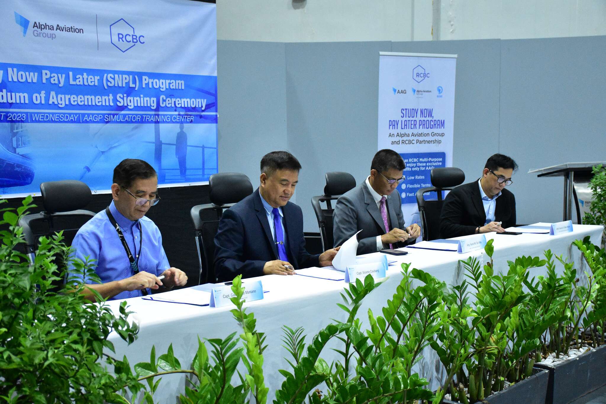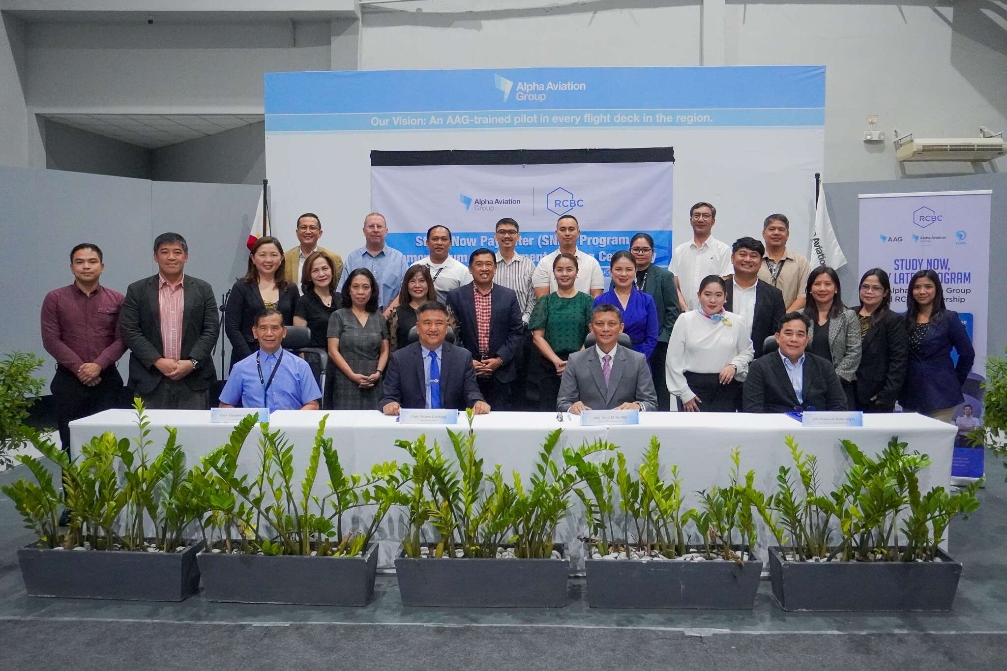 Clark Freeport Zone, Pampanga – Alpha Aviation Group (AAG) and Rizal Commercial Banking Corporation (RCBC) renewed the Study Now Pay Later (SNPL) program in a memorandum of agreement signing ceremony on 09 August 2023. This partnership seeks to continue the delivery of financing assistance which has benefited more than 40 aspiring pilots since it was first launched in 2013.