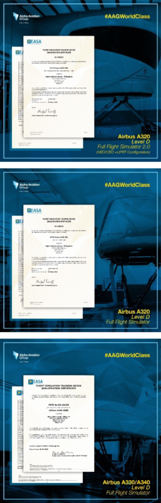 This milestone – a decade of complying to EASA standards, is a result of the concerted and collective efforts of the Quality & Safety Department, the Simulator Maintenance Department, AAG’s Training team, and all the other support teams who worked hard to prepare for the audit and make sure that the auditors will see “world-class” in every focus area of the audit. Few weeks later, the EASA Accreditation certificate for the Airbus A320 Level D FFS, Airbus A320 Level D FFS 2.0 (NEO / CEO + UPRT Configuration), and the Airbus A330 Level D FFS were released and were published on EASA’s website, making AAG still the only facility in the Philippines with FSTDs certified by the EU aviation agency / regulatory body.