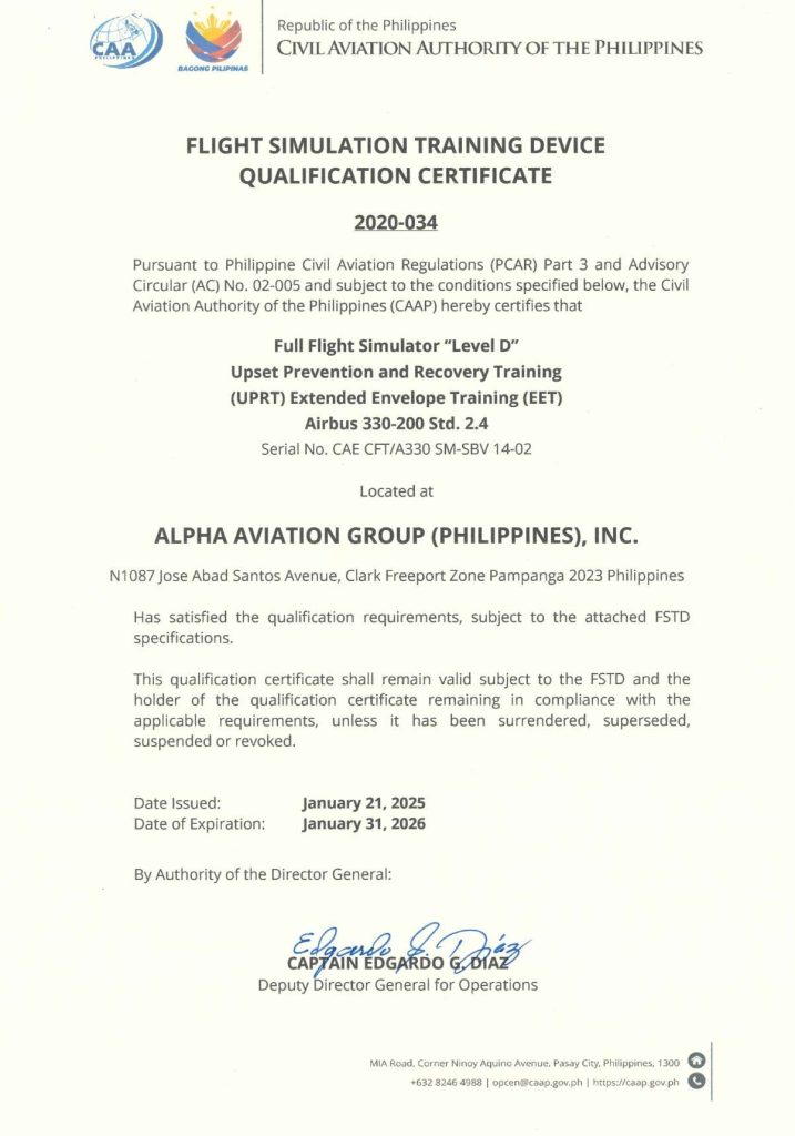 CAAP Qualification Certificate 2020-034 – A330 FSTD with UPRT SN CAE CFT_A330 SM-SBV 14-02By aag-webdev / August 23, 2025