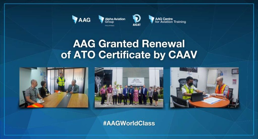 Clark Freeport Zone, Pampanga, Philippines – Alpha Aviation Group (AAG) has been granted a renewal of the Approved Training Organization (ATO) Certificate by