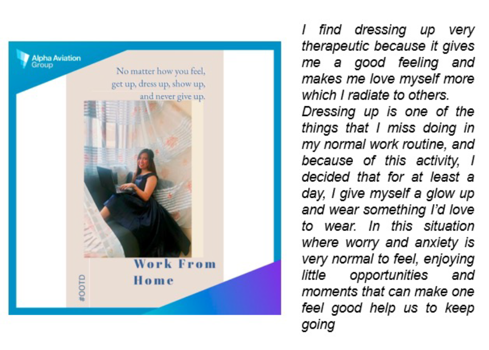 Fun activities and online contests were also rolled-out as part of the Employee Engagement initiatives. These activities include “My Work-From-Home Desk”, “My Work-From-Home OOTD”, “My Work-From-Home Dish” and the “Battle Against the Bulge”.