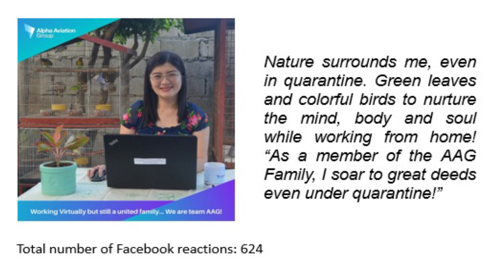 Ever since the implementation of the Luzon-wide Enhanced Community Quarantine, the company has rolled out initiatives in order to check on the employees’ safety and wellbeing and make sure that the temporary “work-from-home” arrangement will be as engaging as possible. “Inside or outside AAG’s premises, we remain to be a family. And as a family, we will continue to reach out to everybody to ensure they are all coping well with the current situation”, says AAG’s Head of Strategic Human Resources, Ms. Gina Vallejo.